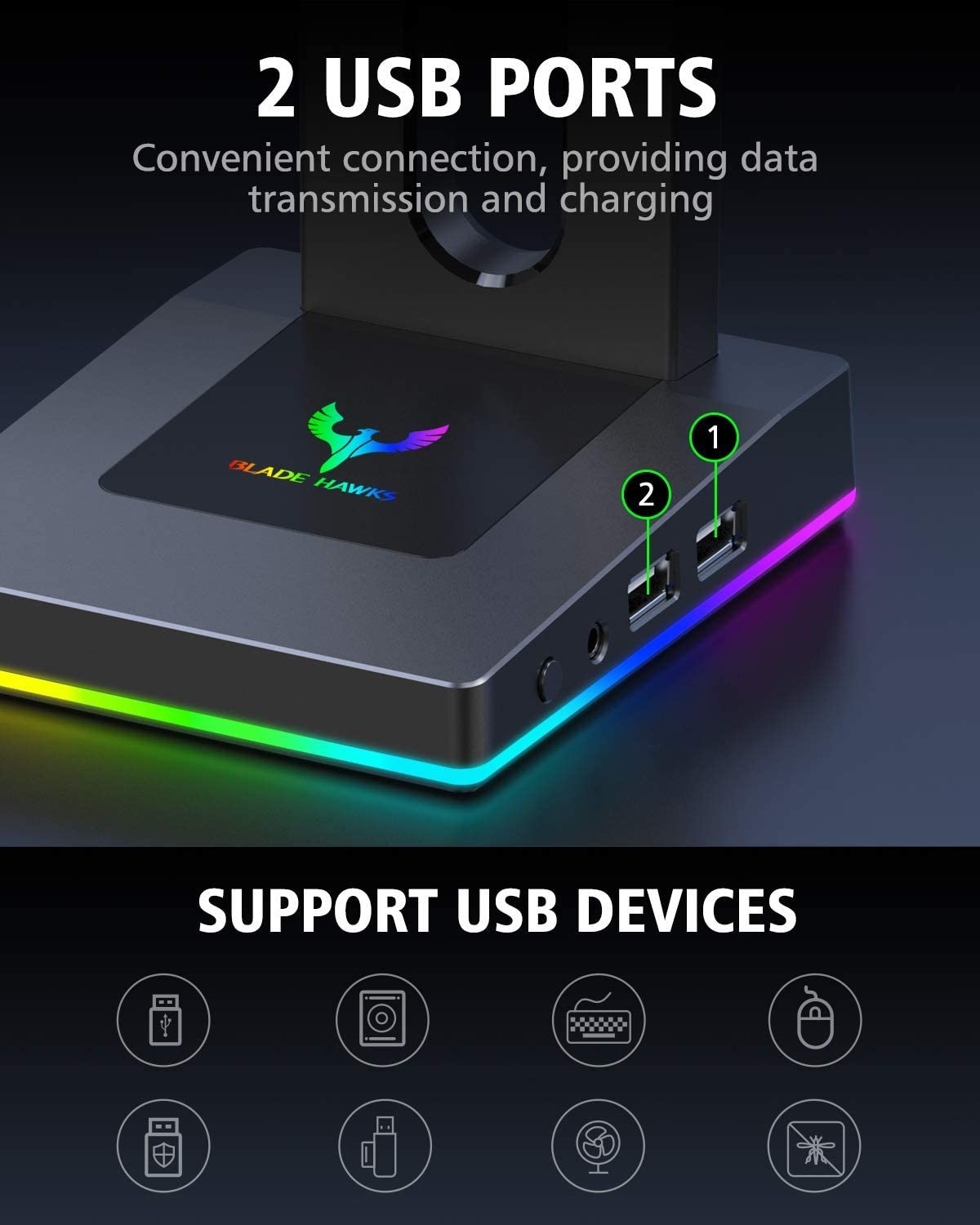 PRATIQUE + COMPATIBLE AVEC TOUS LES CASQUES. Grace au K-stand Radon, votre casque ne traînera plus jamais en vrac sur votre bureau. Ce support pour casque Gamer permet de prendre soin de votre casque tout en désencombrant votre bureau pour gagner de l'espace. Le K-Stand Radon est conviendra parfaitement avec tous les casques gaming, peu importe le type de casque ou la marque. C'est un accessoire indispensable pour compléter votre set up gaming. RÉTROÉCLAIRAGE 7 COULEURS. À la différence de nombreux supports pour casque gaming, le K-Stand Radon est un repose casque rétro-éclairé. Il y a 7 couleurs différentes: rouge, vert, bleu, jaune, violet, turquoise et blanc. L'effet lumineux "respiration" enchaîne les couleurs les unes après les autres. À la fois pratique et esthétique, Le K-Stand Radon fera très vite pleinement partie de votre Setup gaming ! nous avons également ajouté un petit Easter Egg lumineux, Le trouverez-vous?;) MULTIFONCTION. En plus de servir de support pour casque Gamer, le K-Stand Radon sert également de hub USB. La base du Radon est équipée de deux ports USB 2.0 pour faciliter vos branchements, un de chaque côté. Ces ports USB supplémentaires vous permettront de brancher plus facilement votre souris, votre clavier, votre casque gaming, une clé USB ou bien encore de recharger votre smartphone. C'est un accessoire idéal pour alléger les ports USB de votre PC et simplifier vos branchements. DESIGN ÉLÉGANT + STABLE. Nous avons équipé le K-Stand Radon d'une base en caoutchouc pour une stabilité parfaite, Il ne bougera pas d'un Centimètre. Ce support pour casque est léger, peu encombrant et trônera fièrement sur votre bureau. Son design unique ne passera pas inaperçu auprès de vos amis. La qualité des finitions A été particulièrement travaillée. Très facile à utiliser, Branchez-le en USB et il fonctionne directement. Aucun logiciel n'est nécessaire. DURABLE + GARANTIE 2 ANS. Chez The G-LAB, nous prenons à cœur de tester tous nos produits afin de vous assurer la meilleure qualité possible. Si jamais le produit ne vous convient pas, vous permet de le retourner sous 30 jours, sans frais et contenir un remboursement intégral. Ce modèle est garanti 2 ans, c'est un investissement sans risque pour vous. Très attentif à l'avis de nos clients, notre SAV français sera toujours là pour vous aider si nécessaire et répond en -24H.